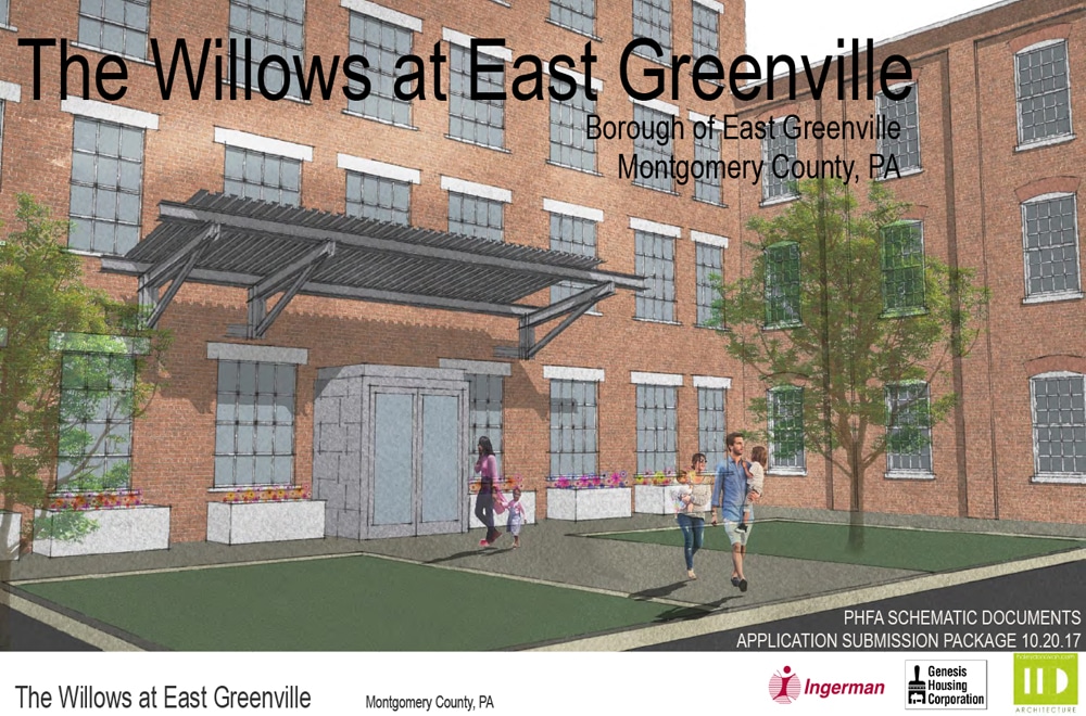 Genesis Housing partnered with Ingerman to redevelop historic buildings in East Greenville, Montgomery County into a 71-unit mixed-income rental development providing safe, accessible affordable housing. Genesis Housing and Ingerman won a 2022 Montgomery County award for the development from the Montgomery County Planning Commission for one of the best local projects.
